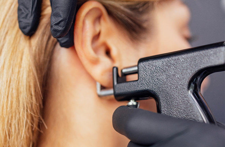 Our certified piercing artist arrives at your location with all necessary tools and sterile equipment.